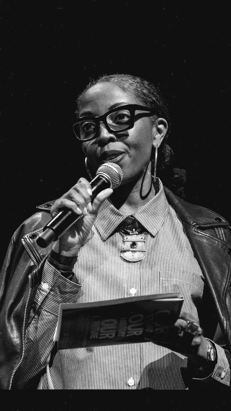 With collaborator Rena Anakwe, the artist has developed works that combine her literary, film, performance and sound practices through “Our Mourning Due: A Funeral Sermon” (2022); commissioned by SCAD Museum of Art’s Evans Center for African American Studies and “Sonic Escape Routes: Shall We Fly? Or, Shall We Resist?” (2020); commissioned by Weeksville Heritage Center. Her featured role in the short film “When Rain Clouds Gather” by Christian Nyampeta debuted in the 2024 Venice Biennale. She is currently a film educator at Maysles Documentary Center and serves as board chair of The School of Making Thinking as well as on the board of directors of Cucalorus Film Festival.